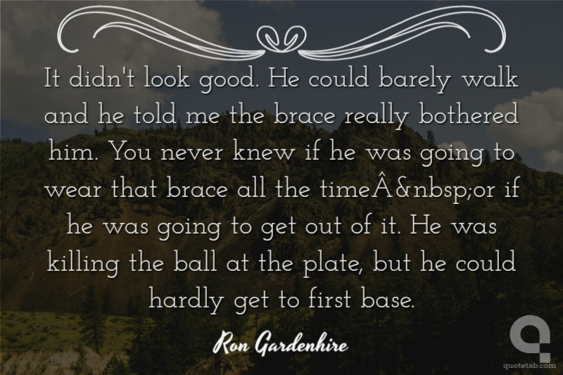 It didn't look good. He could barely walk and he told me the brace really bothered him. You never knew if he was going to wear that brace all the time or if he was going to get out of it. He was killing the ball at the plate, but he could hardly get to first base.