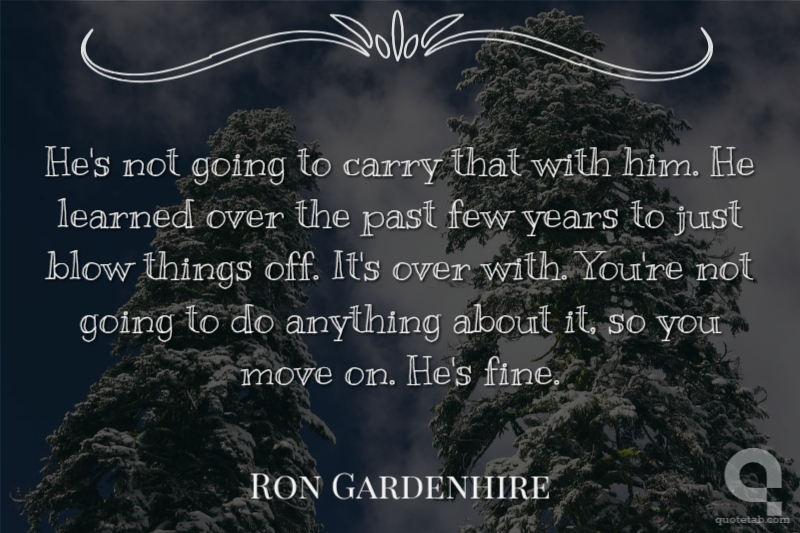 He's not going to carry that with him. He learned over the past few years to just blow things off. It's over with. You're not going to do anything about it, so you move on. He's fine.
