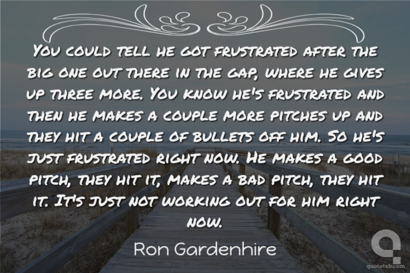 You could tell he got frustrated after the big one out there in the gap, where he gives up three more. You know he's frustrated and then he makes a couple more pitches up and they hit a couple of bullets off him. So he's just frustrated right now. He makes a good pitch, they hit it, makes a bad pitch, they hit it. It's just not working out for him right now.