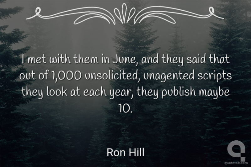 I met with them in June, and they said that out of 1,000 unsolicited, unagented scripts they look at each year, they publish maybe 10.