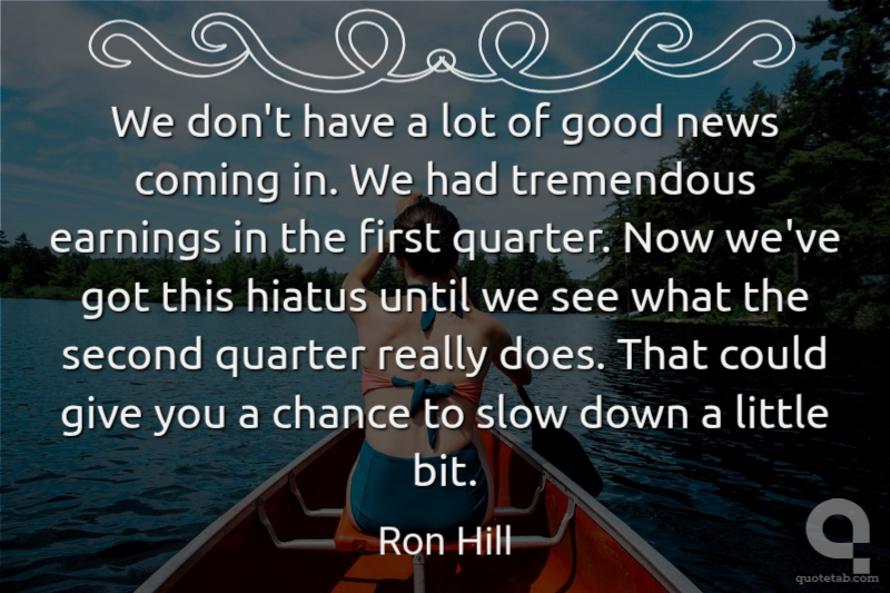 chance coming earnings good hiatus news quarter second slow tremendous until