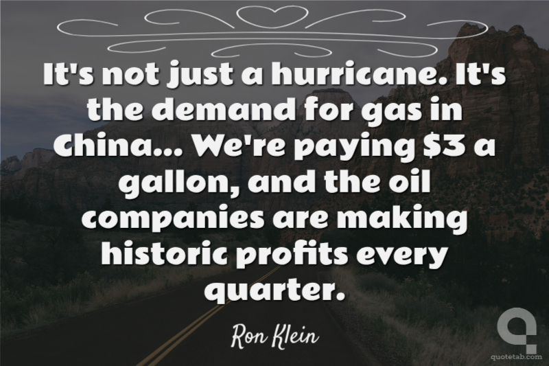 It's not just a hurricane. It's the demand for gas in China... We're paying $3 a gallon, and the oil companies are making historic profits every quarter.