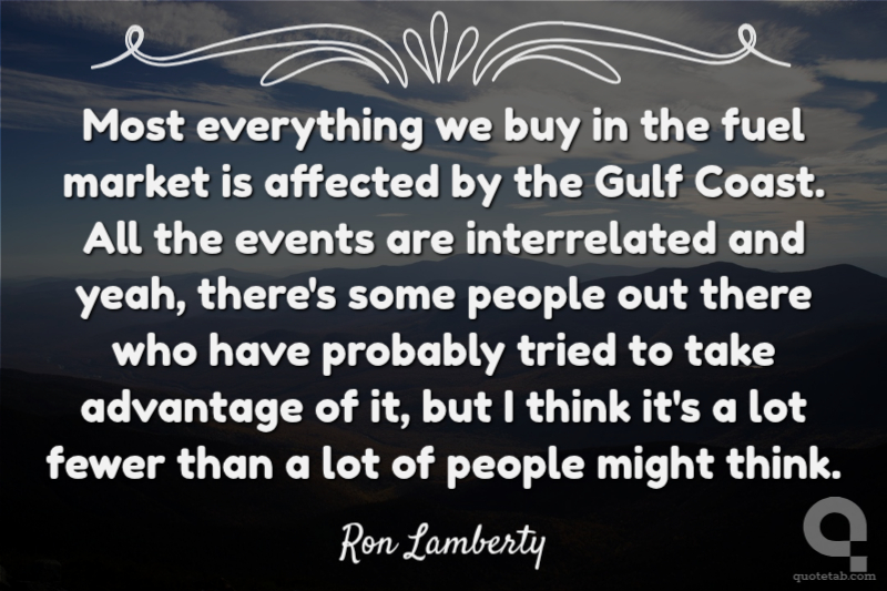 Most everything we buy in the fuel market is affected by the Gulf Coast. All the events are interrelated and yeah, there's some people out there who have probably tried to take advantage of it, but I think it's a lot fewer than a lot of people might think.