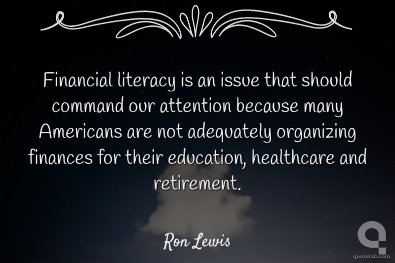 Financial literacy is an issue that should command our attention because many Americans are not adequately organizing finances for their education, healthcare and retirement.