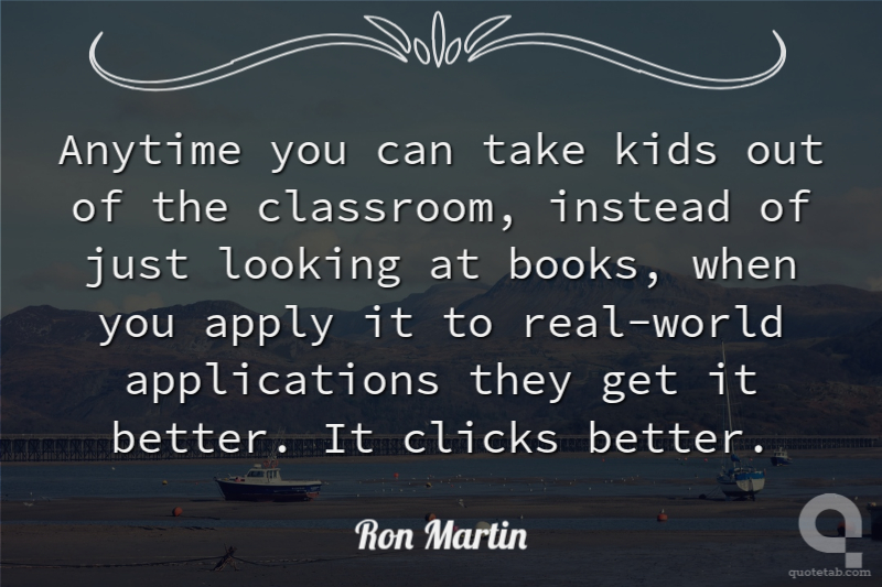 Anytime you can take kids out of the classroom, instead of just looking at books, when you apply it to real-world applications they get it better. It clicks better.