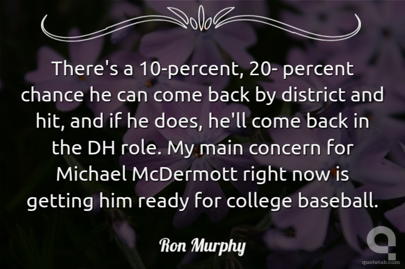 There's a 10-percent, 20- percent chance he can come back by district and hit, and if he does, he'll come back in the DH role. My main concern for Michael McDermott right now is getting him ready for college baseball.