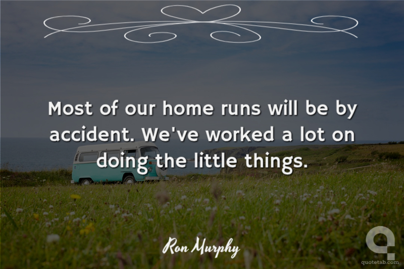 Most of our home runs will be by accident. We've worked a lot on doing the little things.