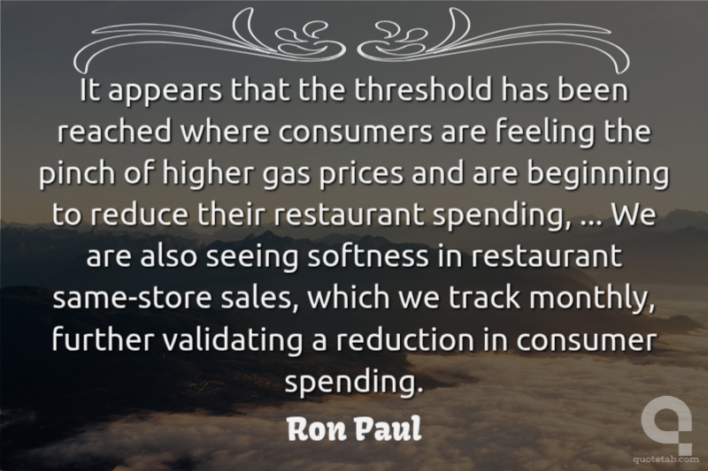 It appears that the threshold has been reached where consumers are feeling the pinch of higher gas prices and are beginning to reduce their restaurant spending, ... We are also seeing softness in restaurant same-store sales, which we track monthly, further validating a reduction in consumer spending.