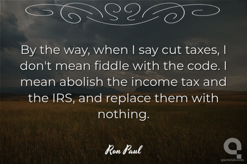 By the way, when I say cut taxes, I don't mean fiddle with the code. I mean abolish the income tax and the IRS, and replace them with nothing.