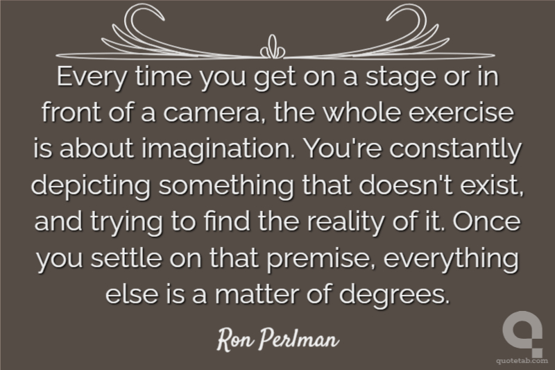 Every time you get on a stage or in front of a camera, the whole exercise is about imagination. You're constantly depicting something that doesn't exist, and trying to find the reality of it. Once you settle on that premise, everything else is a matter of degrees.