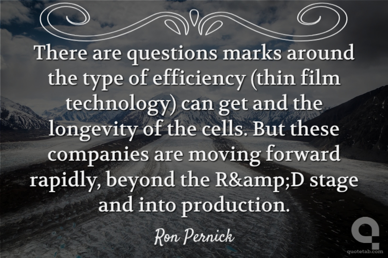 There are questions marks around the type of efficiency (thin film technology) can get and the longevity of the cells. But these companies are moving forward rapidly, beyond the R&D stage and into production.