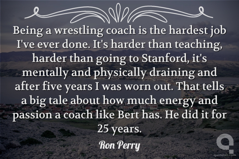 Being a wrestling coach is the hardest job I've ever done. It's harder than teaching, harder than going to Stanford, it's mentally and physically draining and after five years I was worn out. That tells a big tale about how much energy and passion a coach like Bert has. He did it for 25 years.