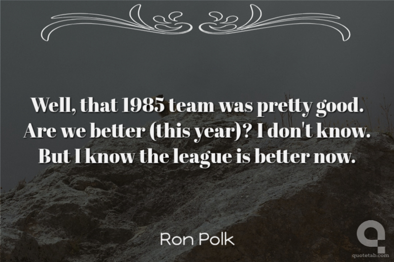 Well, that 1985 team was pretty good. Are we better (this year)? I don't know. But I know the league is better now.