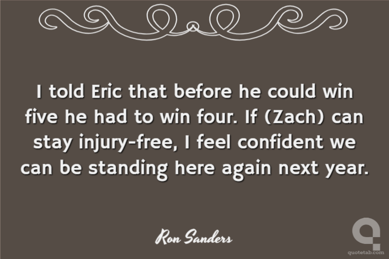 I told Eric that before he could win five he had to win four. If (Zach) can stay injury-free, I feel confident we can be standing here again next year.