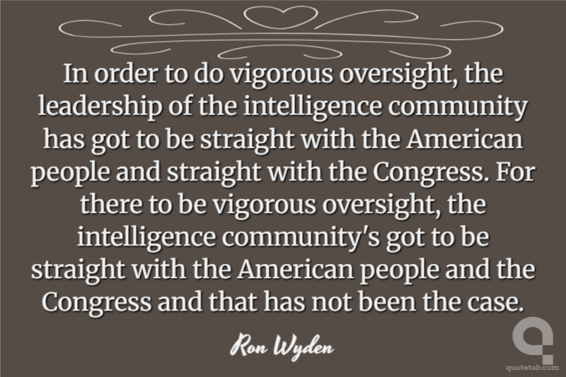 In order to do vigorous oversight, the leadership of the intelligence community has got to be straight with the American people and straight with the Congress. For there to be vigorous oversight, the intelligence community's got to be straight with the American people and the Congress and that has not been the case.