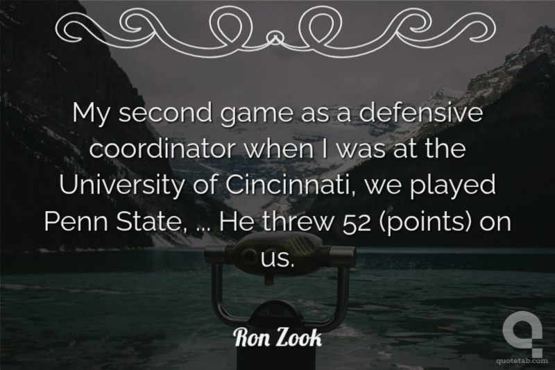 My second game as a defensive coordinator when I was at the University of Cincinnati, we played Penn State, ... He threw 52 (points) on us.