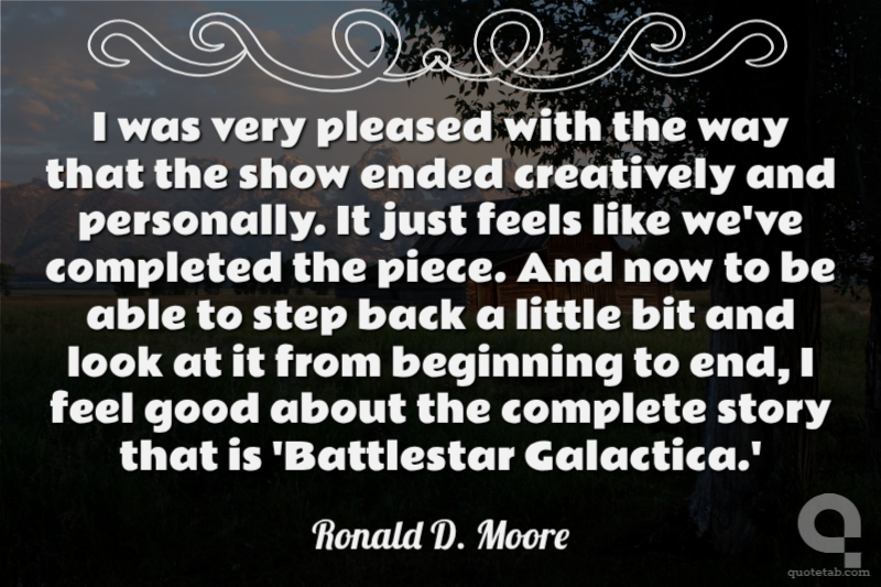 I was very pleased with the way that the show ended creatively and personally. It just feels like we've completed the piece. And now to be able to step back a little bit and look at it from beginning to end, I feel good about the complete story that is 'Battlestar Galactica.'