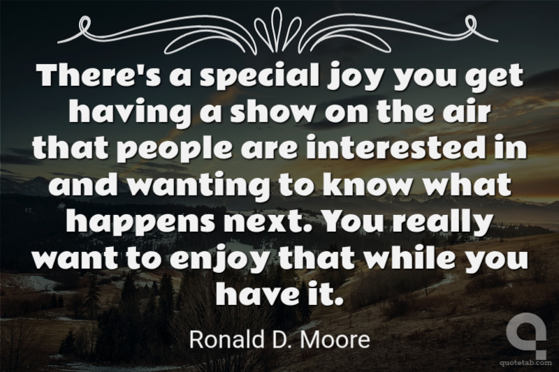 There's a special joy you get having a show on the air that people are interested in and wanting to know what happens next. You really want to enjoy that while you have it.