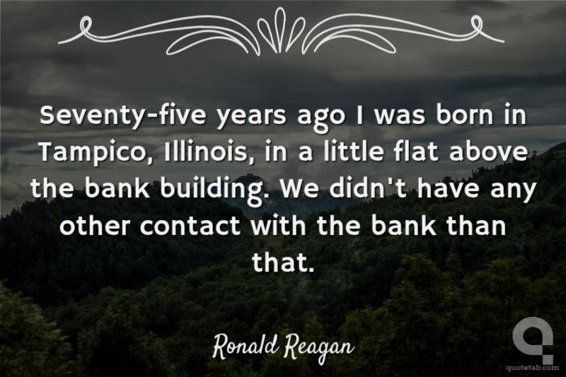 Seventy-five years ago I was born in Tampico, Illinois, in a little flat above the bank building. We didn't have any other contact with the bank than that.