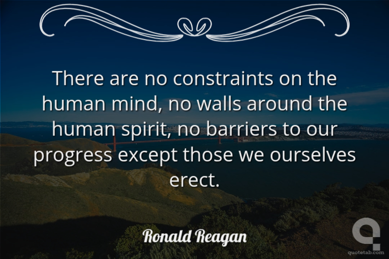 There are no constraints on the human mind, no walls around the human spirit, no barriers to our progress except those we ourselves erect.