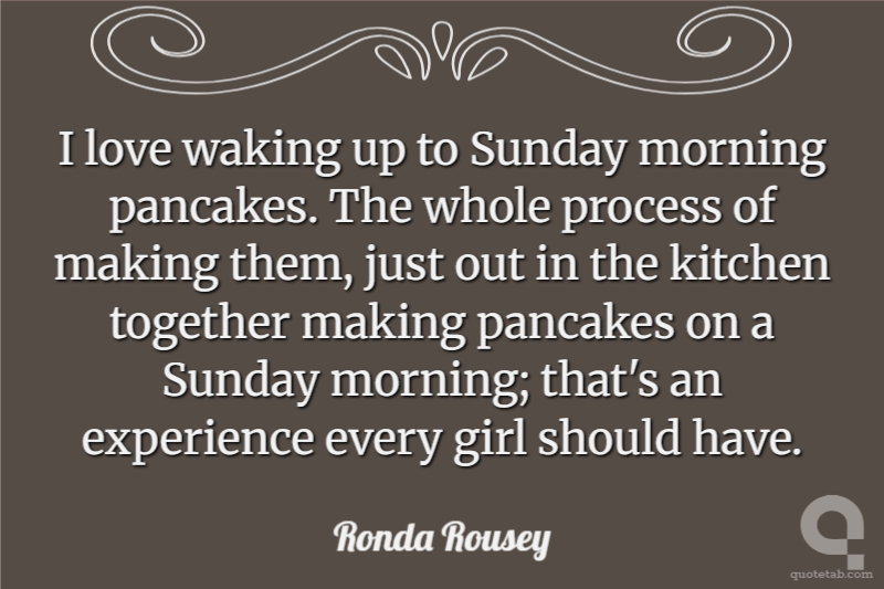 I love waking up to Sunday morning pancakes. The whole process of making them, just out in the kitchen together making pancakes on a Sunday morning; that's an experience every girl should have.