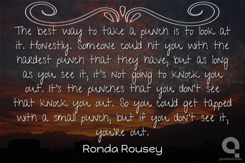 The best way to take a punch is to look at it. Honestly. Someone could hit you with the hardest punch that they have, but as long as you see it, it's not going to knock you out. It's the punches that you don't see that knock you out. So you could get tapped with a small punch, but if you don't see it, you're out.
