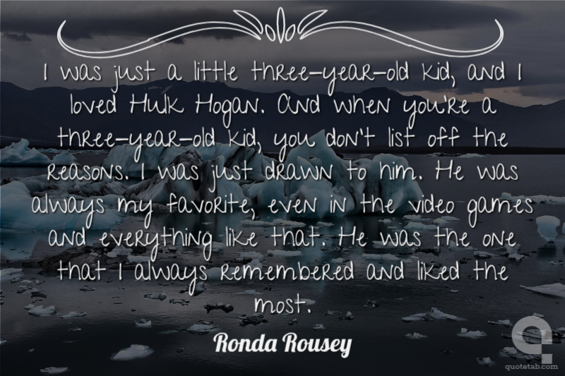 I was just a little three-year-old kid, and I loved Hulk Hogan. And when you're a three-year-old kid, you don't list off the reasons. I was just drawn to him. He was always my favorite, even in the video games and everything like that. He was the one that I always remembered and liked the most.