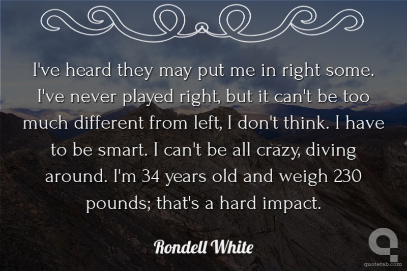 I've heard they may put me in right some. I've never played right, but it can't be too much different from left, I don't think. I have to be smart. I can't be all crazy, diving around. I'm 34 years old and weigh 230 pounds; that's a hard impact.