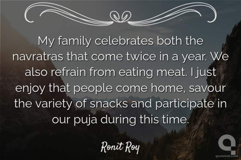 My family celebrates both the navratras that come twice in a year. We also refrain from eating meat. I just enjoy that people come home, savour the variety of snacks and participate in our puja during this time.