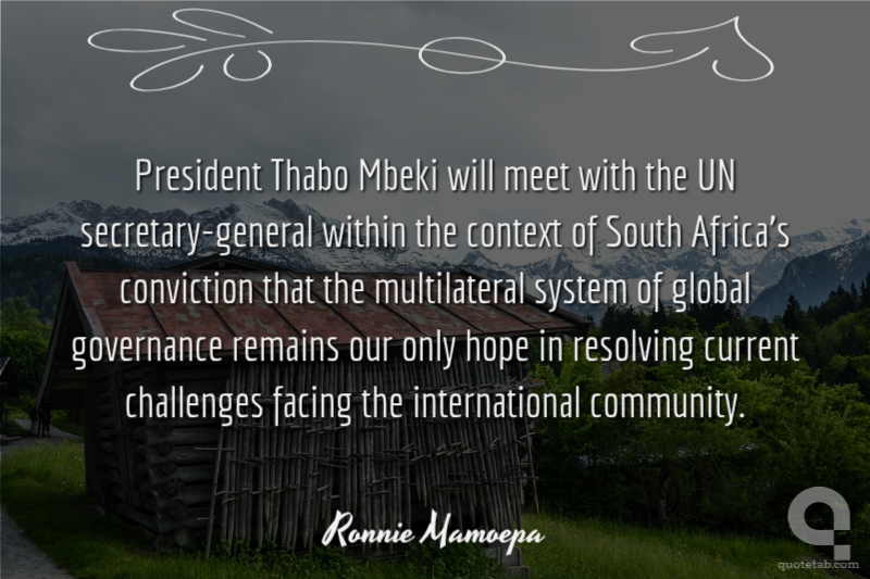 President Thabo Mbeki will meet with the UN secretary-general within the context of South Africa's conviction that the multilateral system of global governance remains our only hope in resolving current challenges facing the international community.