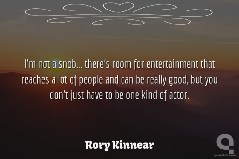 I'm not a snob... there's room for entertainment that reaches a lot of people and can be really good, but you don't just have to be one kind of actor.