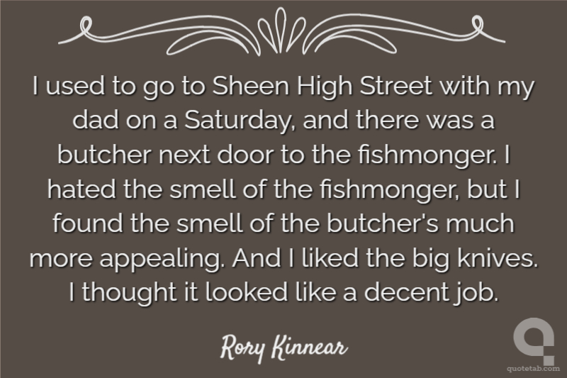 I used to go to Sheen High Street with my dad on a Saturday, and there was a butcher next door to the fishmonger. I hated the smell of the fishmonger, but I found the smell of the butcher's much more appealing. And I liked the big knives. I thought it looked like a decent job.