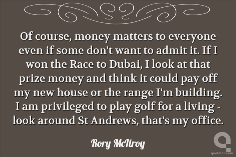 Of course, money matters to everyone even if some don't want to admit it. If I won the Race to Dubai, I look at that prize money and think it could pay off my new house or the range I'm building. I am privileged to play golf for a living - look around St Andrews, that's my office.