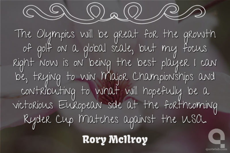 The Olympics will be great for the growth of golf on a global scale, but my focus right now is on being the best player I can be, trying to win Major Championships and contributing to what will hopefully be a victorious European side at the forthcoming Ryder Cup Matches against the USA.