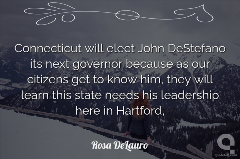 Connecticut will elect John DeStefano its next governor because as our citizens get to know him, they will learn this state needs his leadership here in Hartford,