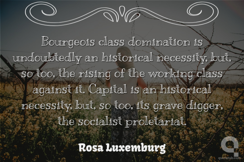Bourgeois class domination is undoubtedly an historical necessity, but, so too, the rising of the working class against it. Capital is an historical necessity, but, so too, its grave digger, the socialist proletariat.