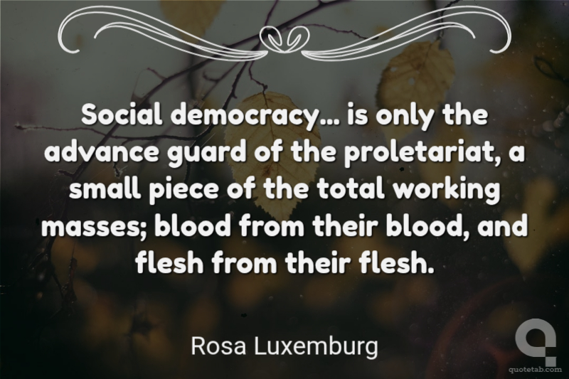 Social democracy... is only the advance guard of the proletariat, a small piece of the total working masses; blood from their blood, and flesh from their flesh.