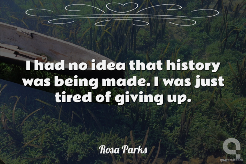 People always say that I didn’t give up my seat because I was tired, but that isn’t true. No, the only tired I was, was tired of giving in.