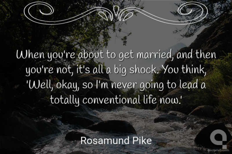 When you're about to get married, and then you're not, it's all a big shock. You think, 'Well, okay, so I'm never going to lead a totally conventional life now.'