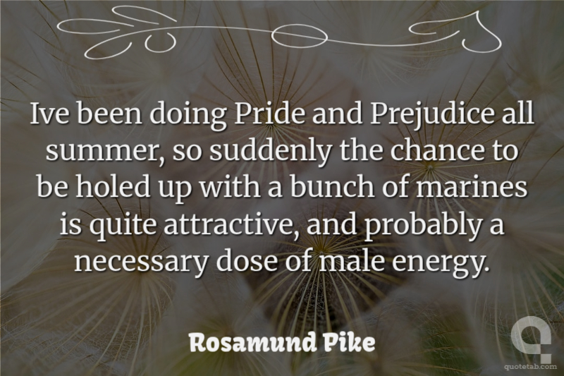 Ive been doing Pride and Prejudice all summer, so suddenly the chance to be holed up with a bunch of marines is quite attractive, and probably a necessary dose of male energy.