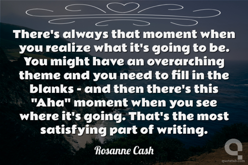 There's always that moment when you realize what it's going to be. You might have an overarching theme and you need to fill in the blanks - and then there's this "Aha" moment when you see where it's going. That's the most satisfying part of writing.