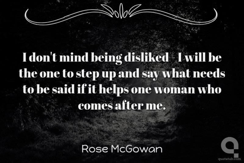I don't mind being disliked - I will be the one to step up and say what needs to be said if it helps one woman who comes after me.