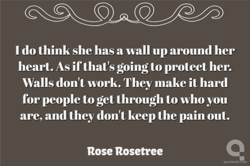 I do think she has a wall up around her heart. As if that's going to protect her. Walls don't work. They make it hard for people to get through to who you are, and they don't keep the pain out.