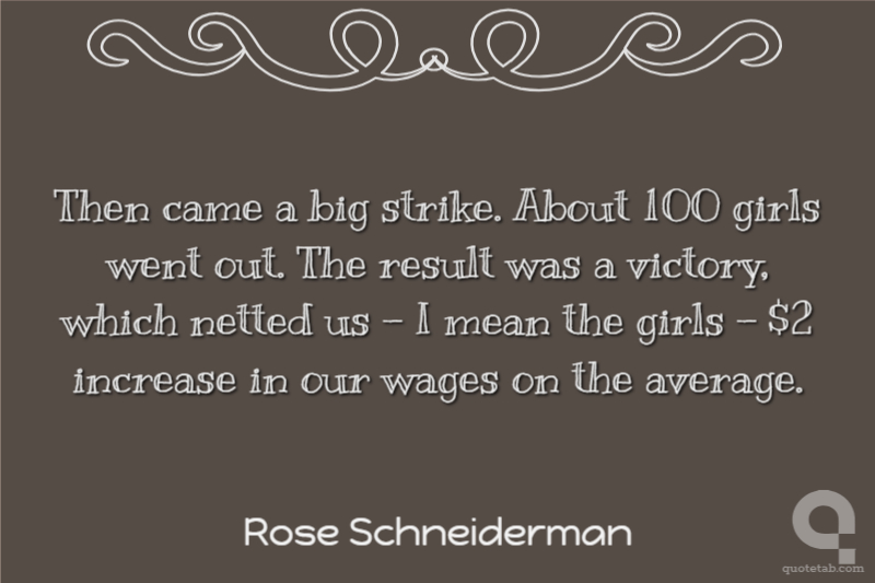 Then came a big strike. About 100 girls went out. The result was a victory, which netted us - I mean the girls - $2 increase in our wages on the average.