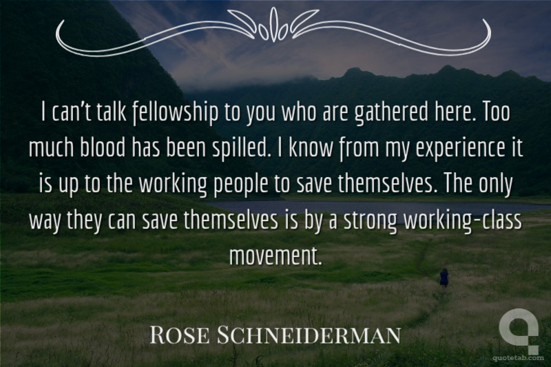 I can't talk fellowship to you who are gathered here. Too much blood has been spilled. I know from my experience it is up to the working people to save themselves. The only way they can save themselves is by a strong working-class movement.