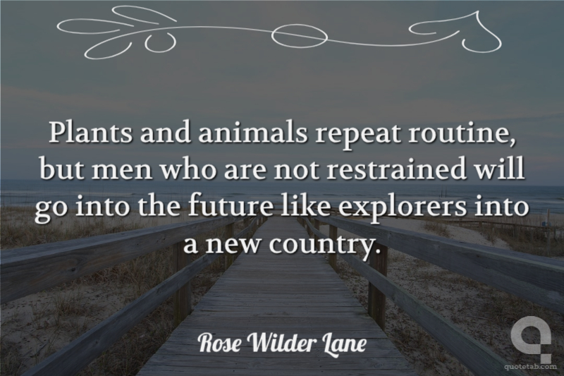 Plants and animals repeat routine, but men who are not restrained will go into the future like explorers into a new country.
