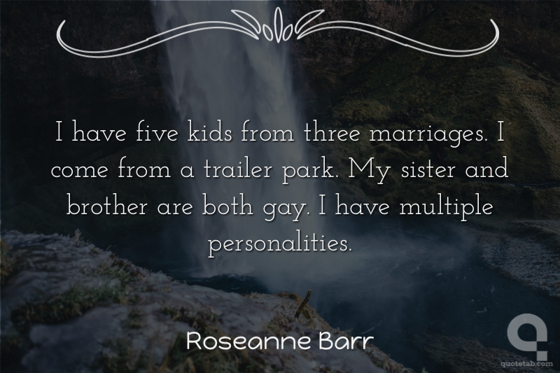 I have five kids from three marriages. I come from a trailer park. My sister and brother are both gay. I have multiple personalities.