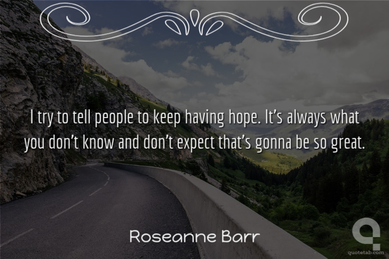 I try to tell people to keep having hope. It's always what you don't know and don't expect that's gonna be so great.