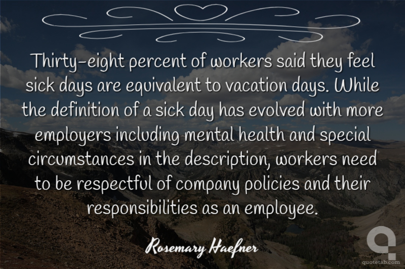 Thirty-eight percent of workers said they feel sick days are equivalent to vacation days. While the definition of a sick day has evolved with more employers including mental health and special circumstances in the description, workers need to be respectful of company policies and their responsibilities as an employee.