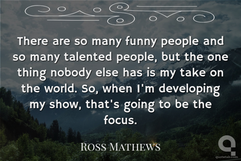There are so many funny people and so many talented people, but the one thing nobody else has is my take on the world. So, when I'm developing my show, that's going to be the focus.